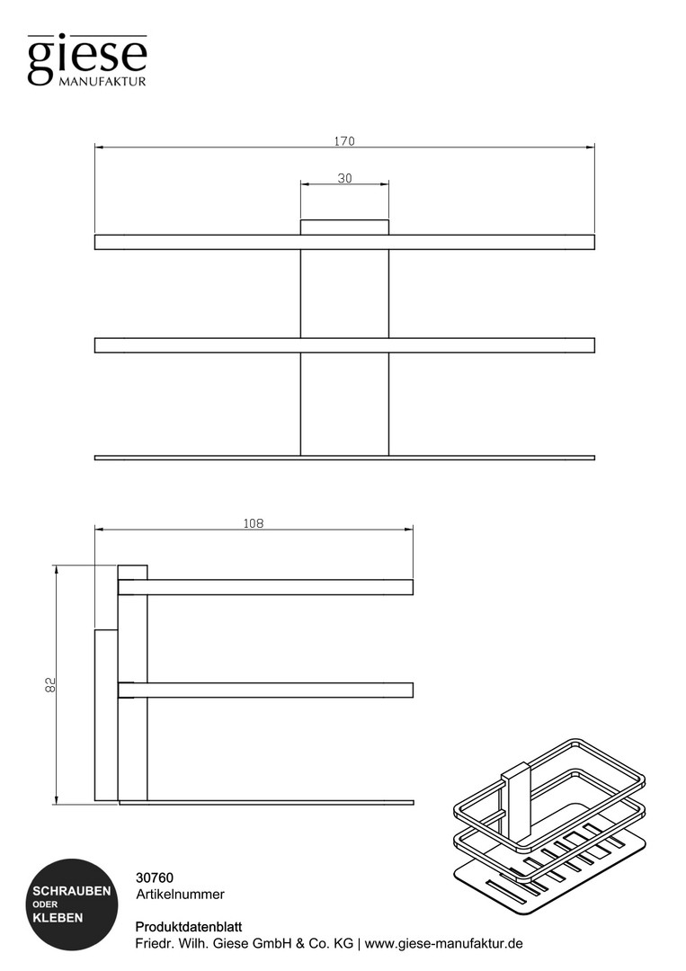 Giese Duschkorb Piano 170x82x108mm, verchromt W359330