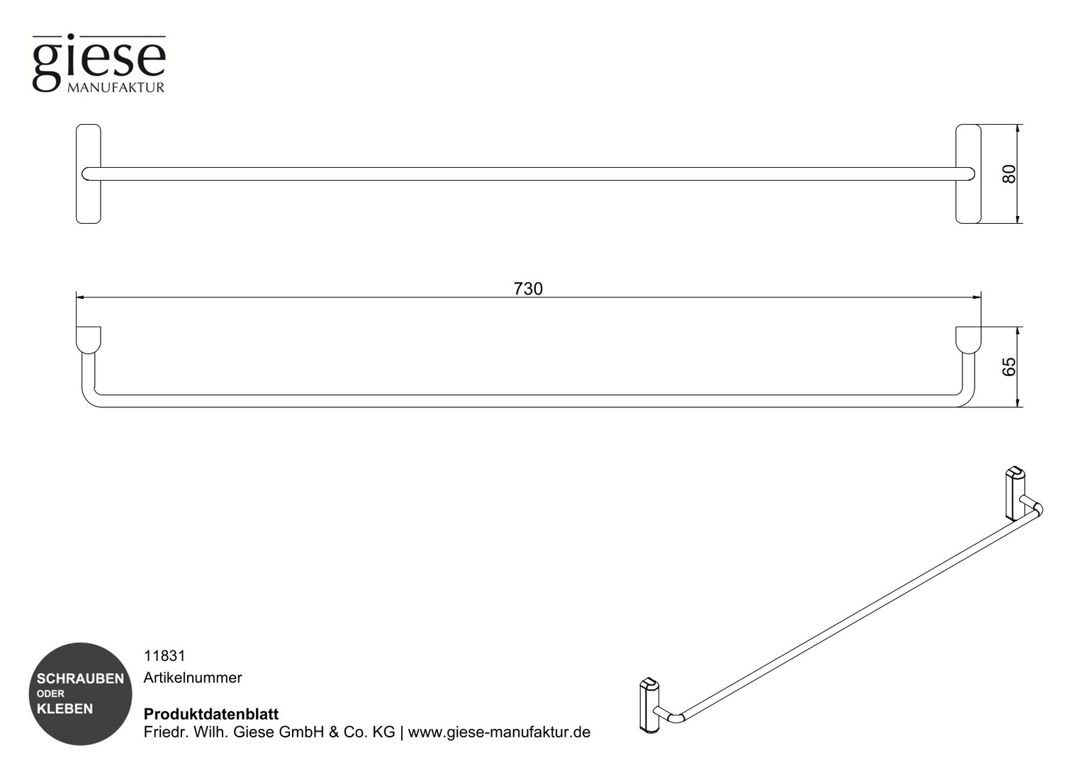 Giese Badetuchhalter Etagère 1-teilig, 730x65x80mm, verchromt W359482