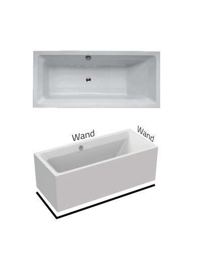 aus Sanitäracryl, Ablauf: Mitte, Überlauf: wahlweise rechts oder links, mit Push-Up Ab- und Überlaufgarnitur (verchromt), mit Füße