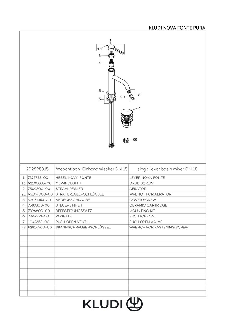 KLUDI Nova Fonte Pura Waschtisch-Einhebelmischer mit Push-Open Ablaufgarnitur, chrom W324545