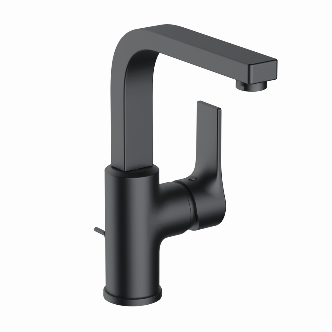 KLUDI ZENTA SL Waschtisch-Einhebelmischer Hebel seitlich, mit Ablaufgarnitur, schwenkbarer Auslauf 360Grad, mattschwarz W324832