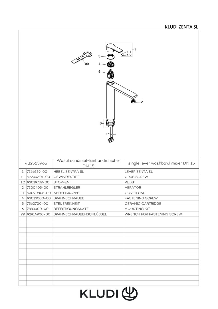 KLUDI ZENTA SL Waschschüssel-Einhebelmischer ohne Ablaufgarnitur, chrom W324841