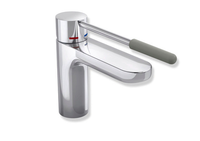 HEWI Waschtisch-Einhebelmischer AQ 800 K verchromt, Griff koralle, Ausladung 159mm, verlängerter Hebel, matt W338609