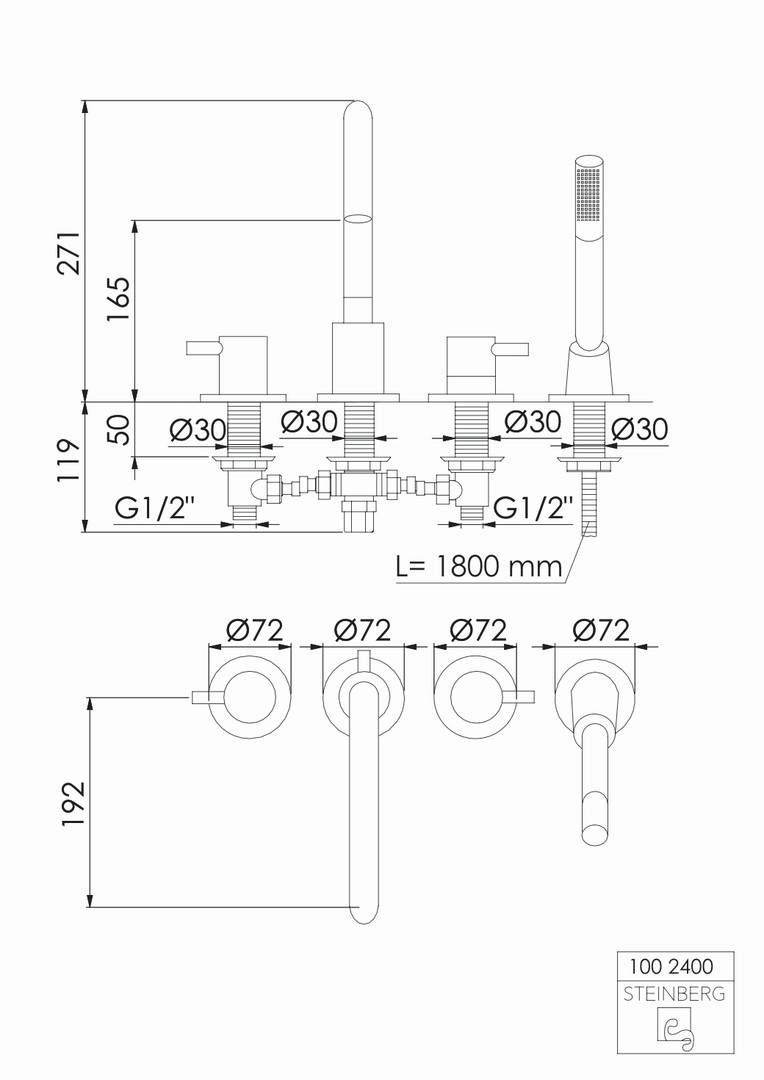 Steinberg Wannen-4-Loch-Armatur Serie 100 Ausladung 192mm, schwenkbarer Auslauf, chrome 260113