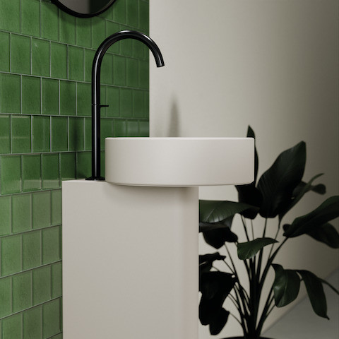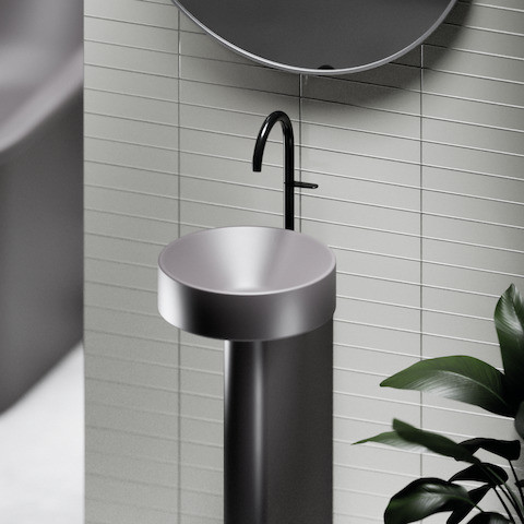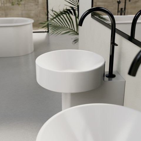 Waschtisch Pedestal BetteSuno d= 34x86,3cm, weiß, ohne Hahnloch