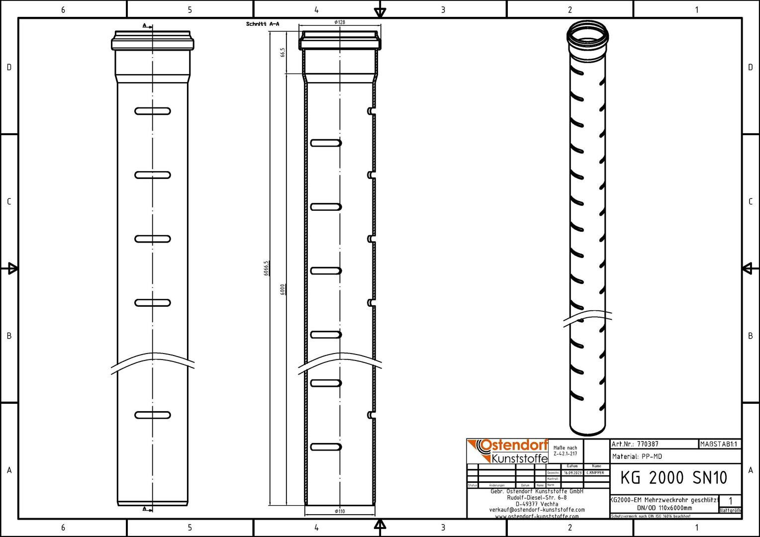 Ostendorf KG2000 Mehrzweckrohr SN 10 EM DN/OD 110, 6000 mm, geschlitzt, 110cm2/m W551718