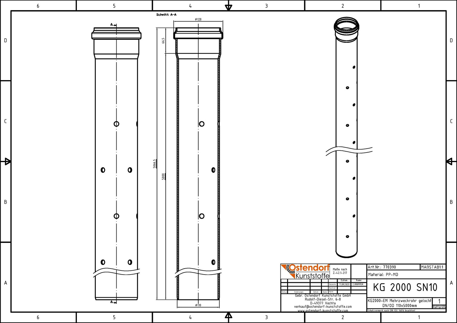 Ostendorf KG2000 Mehrzweckrohr SN 10 EM DN/OD 110, 5000 mm, gelocht