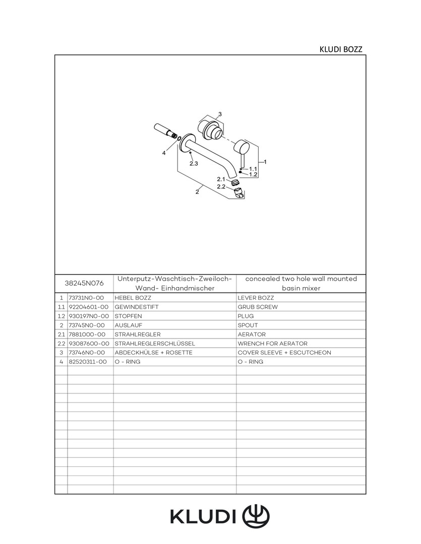 KLUDI BOZZ Fertigmontageset UP-Waschtisch-Zweiloch-Wandarmatur, Ausladung 230mm, chrom W324903