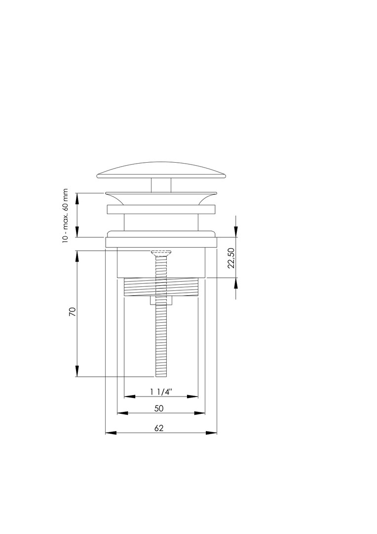 ASW Design-Universalventil 1 1/4"xd= 63mm, rund, Messing, Ø 72 mm, verchromt, nicht verschließbar W348313