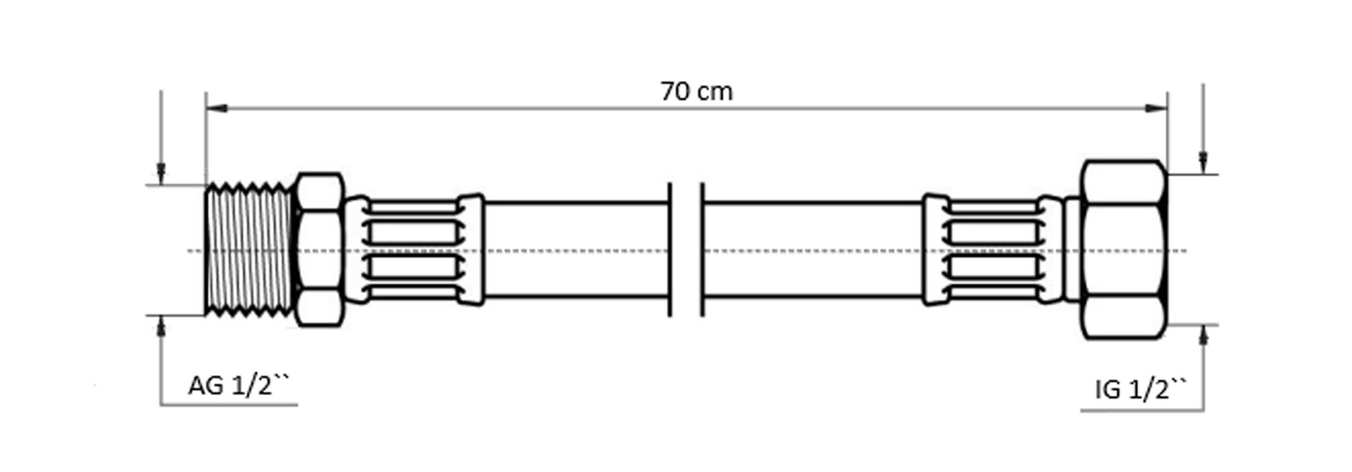 DN 13, Schutz für Heizungs- und Klimatechnik, Sauerstoffdiffusionsdichter Anschlussshlauch mit Edelstahlumflechtung, mechanische Belastbarkeit, Anwendungsbereich bei Kühl- und Heizungssystemen, erfüllt DIN 4726 Norm, reduzierte Korrosionsbildung und Verschlammung in Heiz- und Kühlsystemen, biegsam, geeignet für Systeme mit max. 40% Glykolgemisch, Anschlüsse INOX AISI 304, Betriebsdruck 10 bar, Betriebstemperatur max. 70 °C