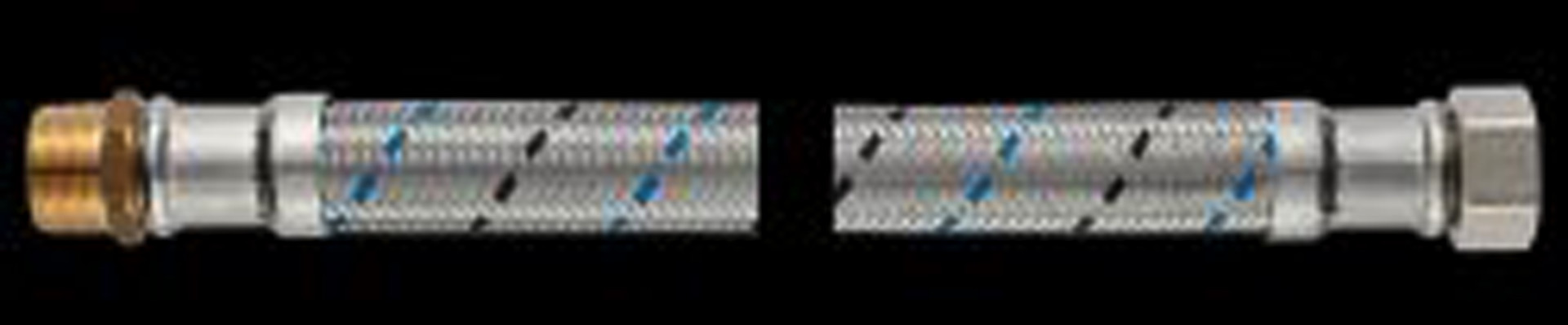 DN 20, Schutz für Heizungs- und Klimatechnik, Sauerstoffdiffusionsdichter Anschlussshlauch mit Edelstahlumflechtung, mechanische Belastbarkeit, Anwendungsbereich bei Kühl- und Heizungssystemen, erfüllt DIN 4726 Norm, reduzierte Korrosionsbildung und Verschlammung in Heiz- und Kühlsystemen, biegsam, geeignet für Systeme mit max. 40% Glykolgemisch, Anschlüsse INOX AISI 304, Betriebsdruck 10 bar, Betriebstemperatur max. 70 °C