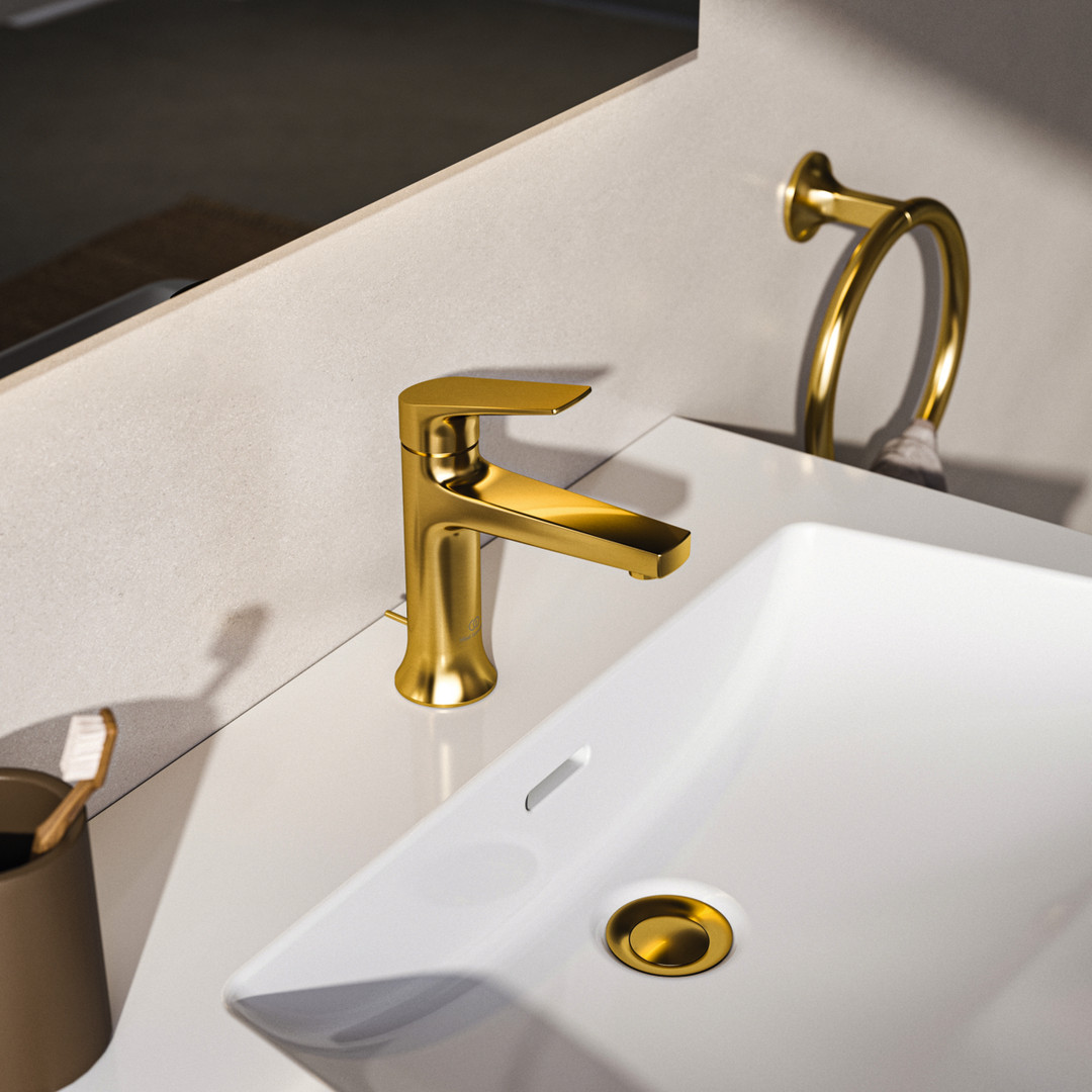 Ideal-Standard Waschtisch-Einhebelmischer La Dolce Vita Grande mit Metall-Ablaufgarnitur, Ausladung 118mm, brushed gold W317755