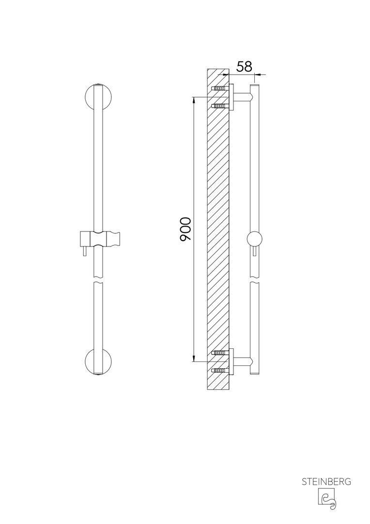 Steinberg Brausestange Serie 100 mit Gleiter, 900 mm, variable Befestigung, brushed nickel W323058