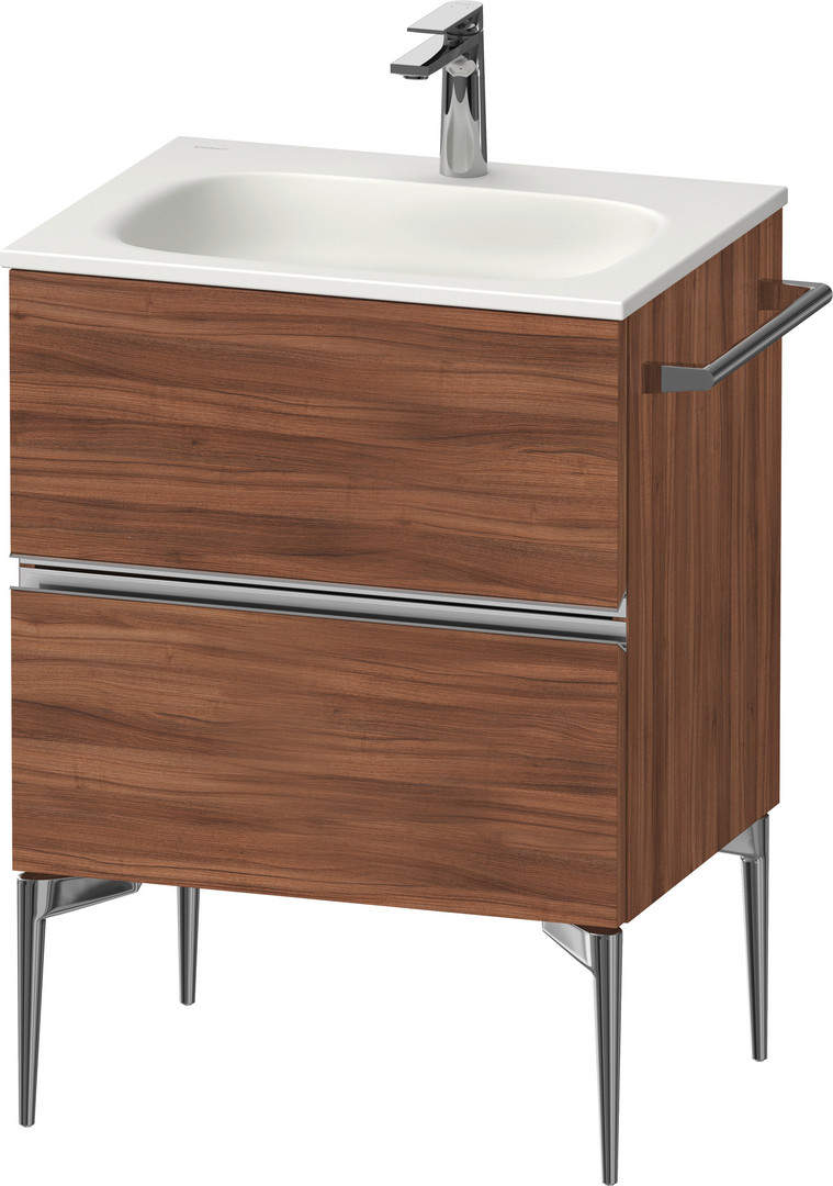 Duravit Waschtisch-Unterschrank wandhängend Sivida 61 x 59,2 x 47,7 cm, 2 Schubkästen, Nussbaum Natur, Griff chrom