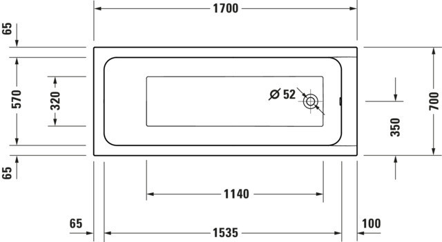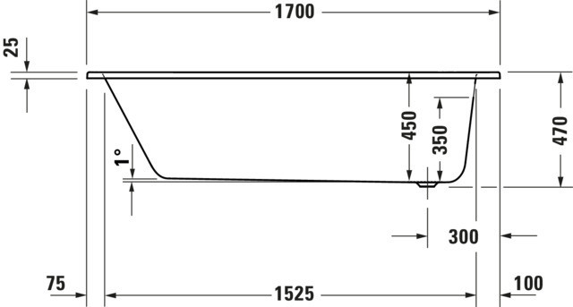 Duravit Rechteck-Badewanne D-Code 170 x 70 x 45 cm, Ablauf im Fußbereich, 1 Rückenschräge, weiß W207091