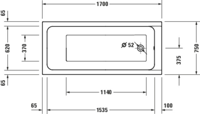 Duravit Rechteck-Badewanne D-Code 170 x 70 x 45 cm, Ablauf im Fußbereich, 1 Rückenschräge, weiß W207091