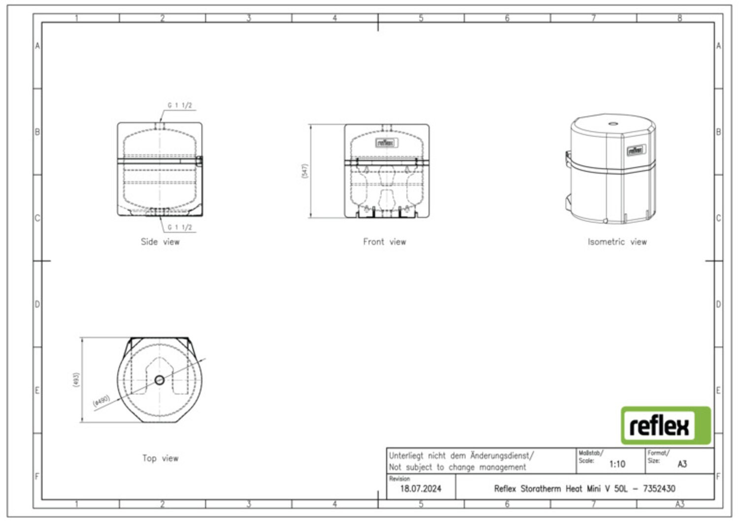Reflex Speicher Storatherm Heat Mini V 100 Ø 480 mm, mit Isolierung 560 mm, mit vertikalen Anschlüssen W817550