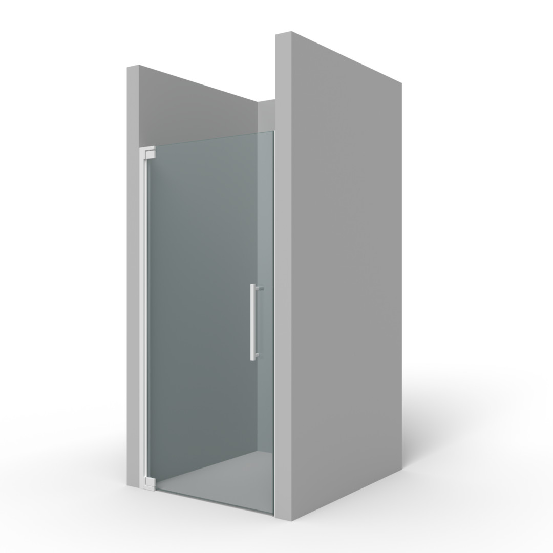 1-teilig, Glas 8 mm ESG transparent, Standardhöhe 2000 mm, Tür öffnet nach innen und außen, mit innen flächenbündigen Beschlägen, bodeneben, optional mit Schwallschiene 4 oder 15 mm hoch, PALM.free, PALM.fix, PALM.lift, PALM.isi-clean, optional PALM.nano, PALM.care, PALM.magic, durchgehendes Wandbefestigungsprofil mit Verstellbereich