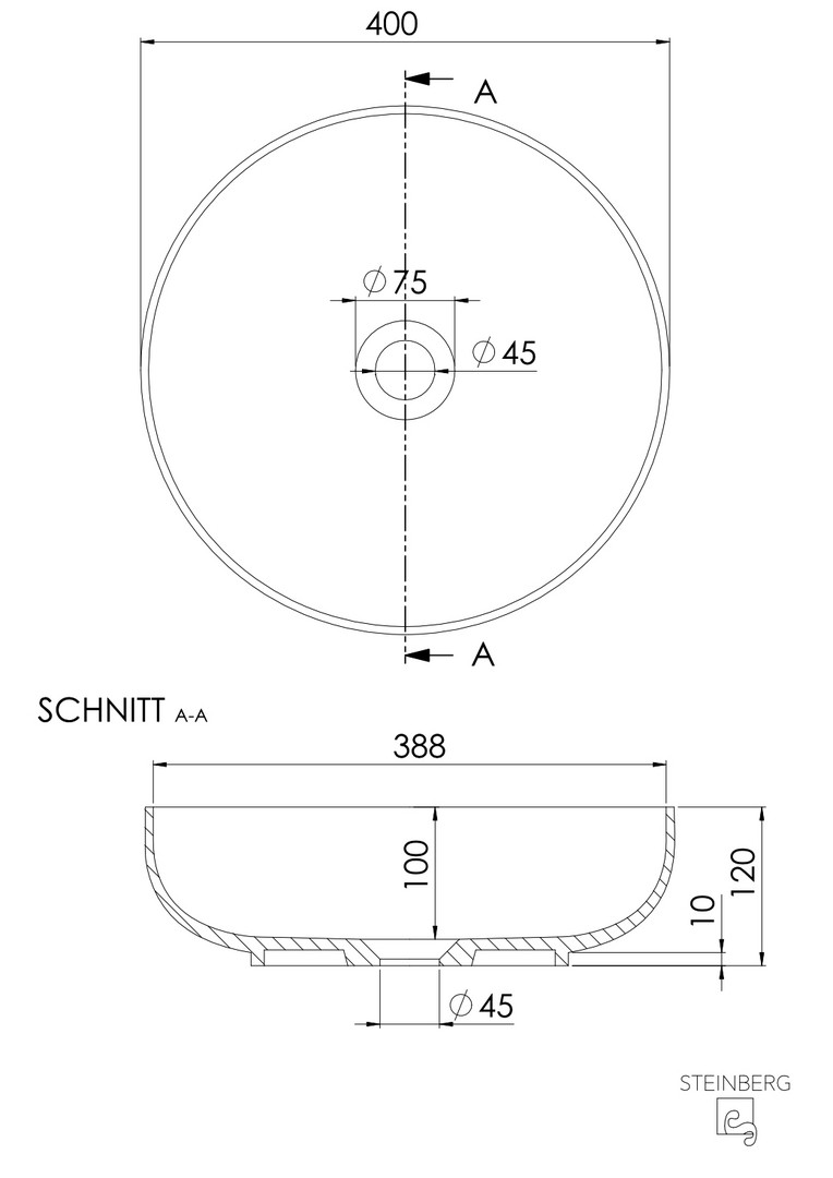 Steinberg Aufsatzwaschtisch Serie 440 d= 400mmx120mm, matt black