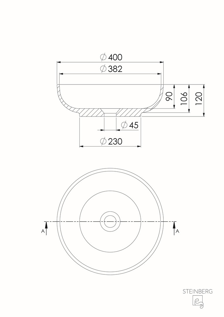 Steinberg Aufsatzwaschtisch Serie 489 d= 400x120mm, graphite W49422
