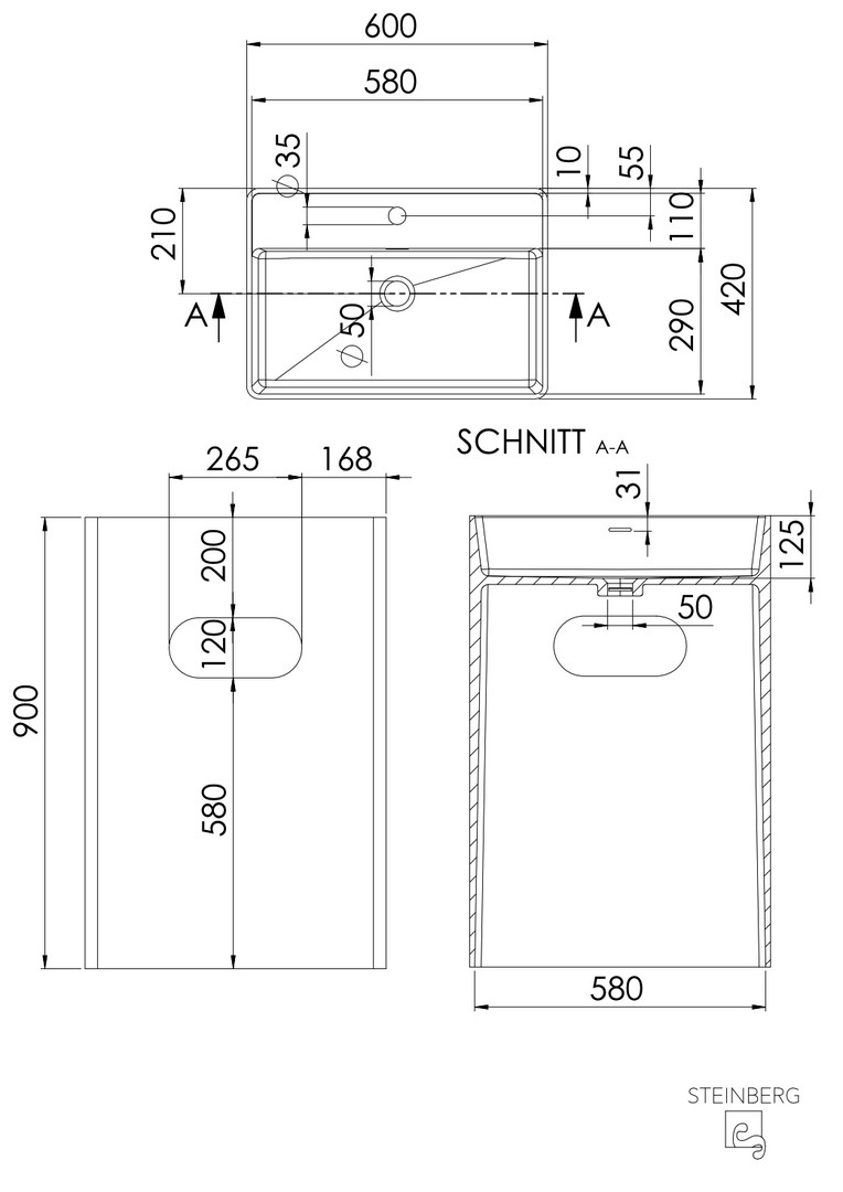 Steinberg Standwaschtisch Serie 540 600x420x900mm, dark pearl, glossy white