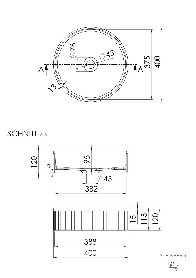 Steinberg Aufsatzwaschtisch Serie 740 d= 400mmx120mm, matt white, matt black