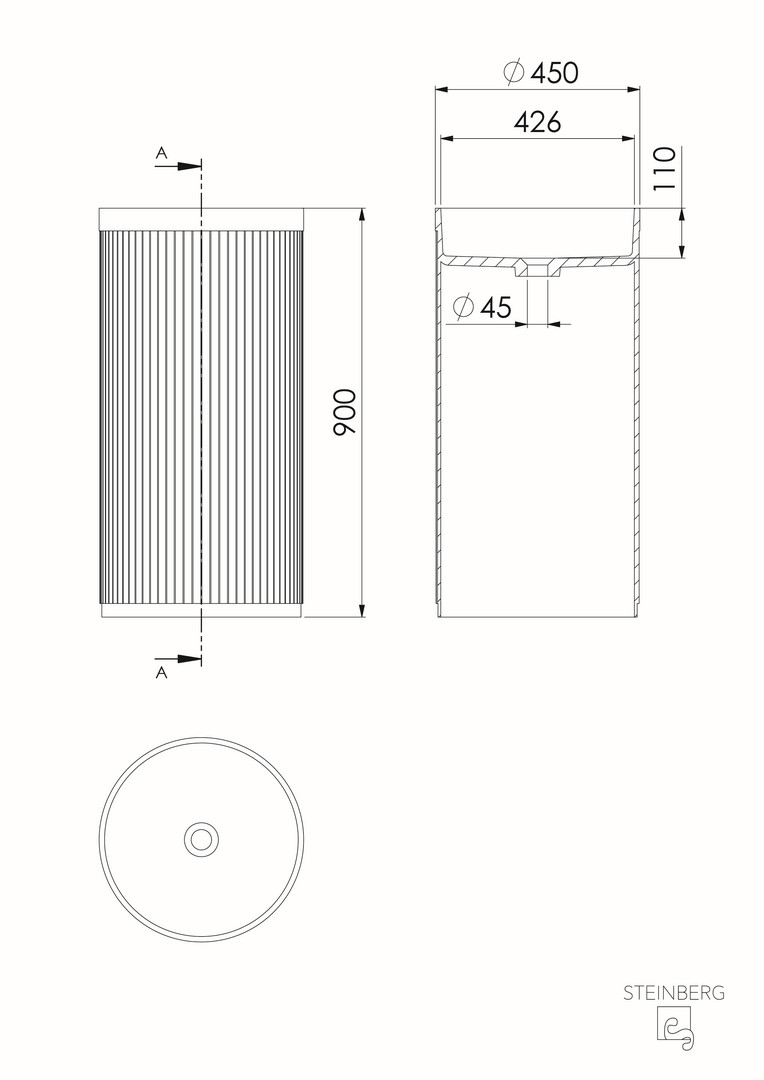 Steinberg Standwaschtisch Serie 740 d= 450mmx900mm, matt black W49449