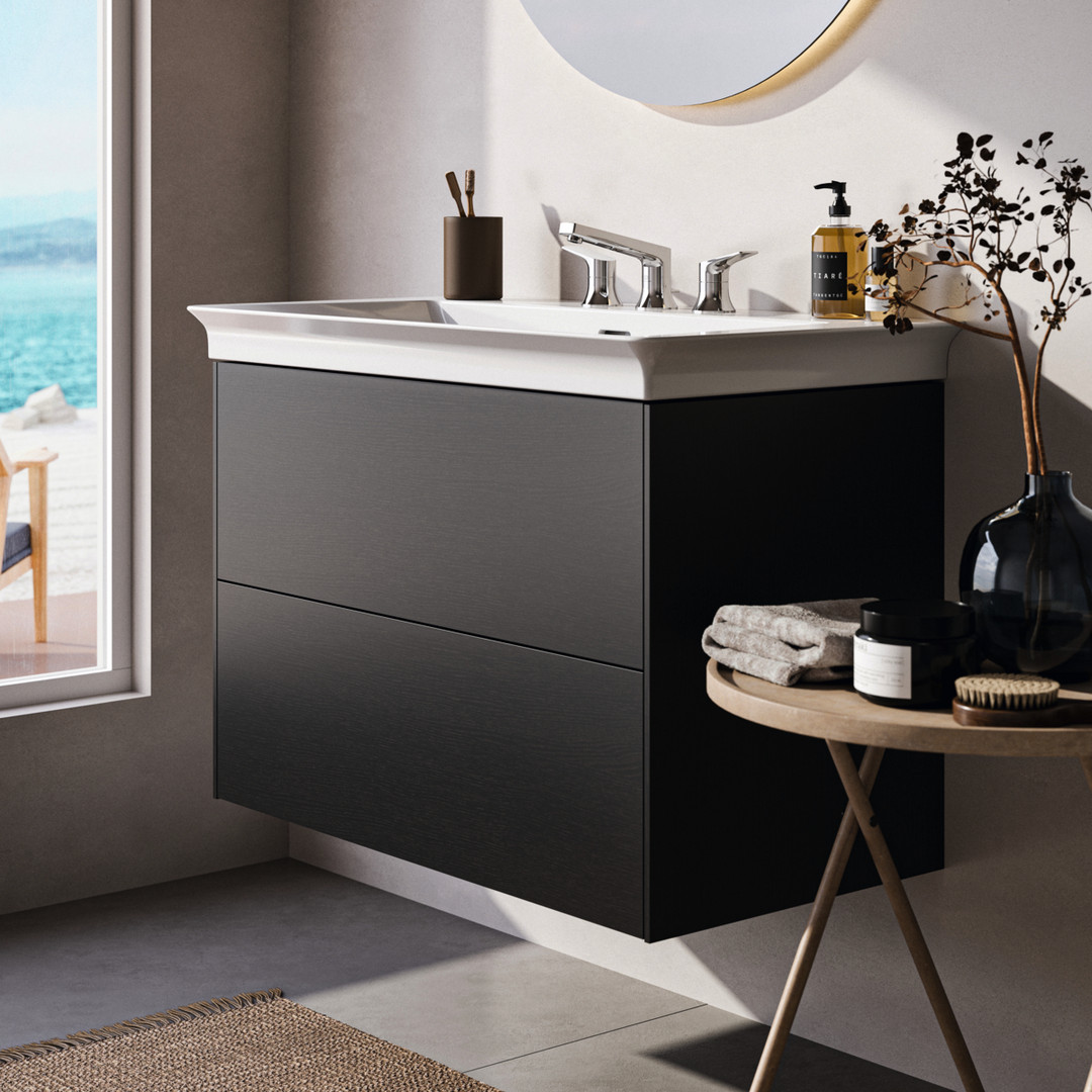Ideal-Standard Waschtisch-Unterschrank Conca 2 Auszüge, 80 x 44 x 54,3 cm, Eiche geflammt Furnier