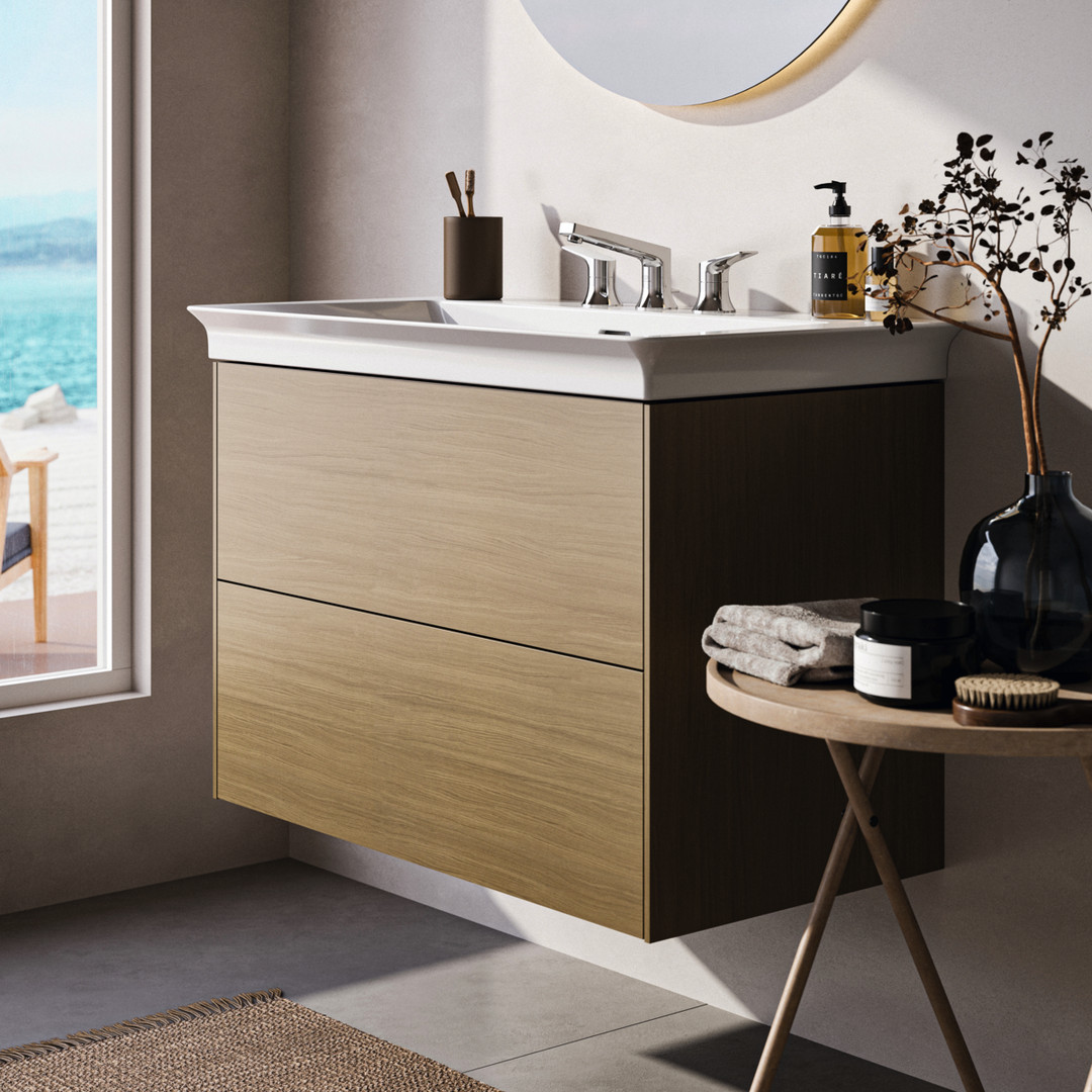 Ideal-Standard Waschtisch-Unterschrank Conca 2 Auszüge, 80 x 44 x 54,3 cm, Eiche hell Furnier