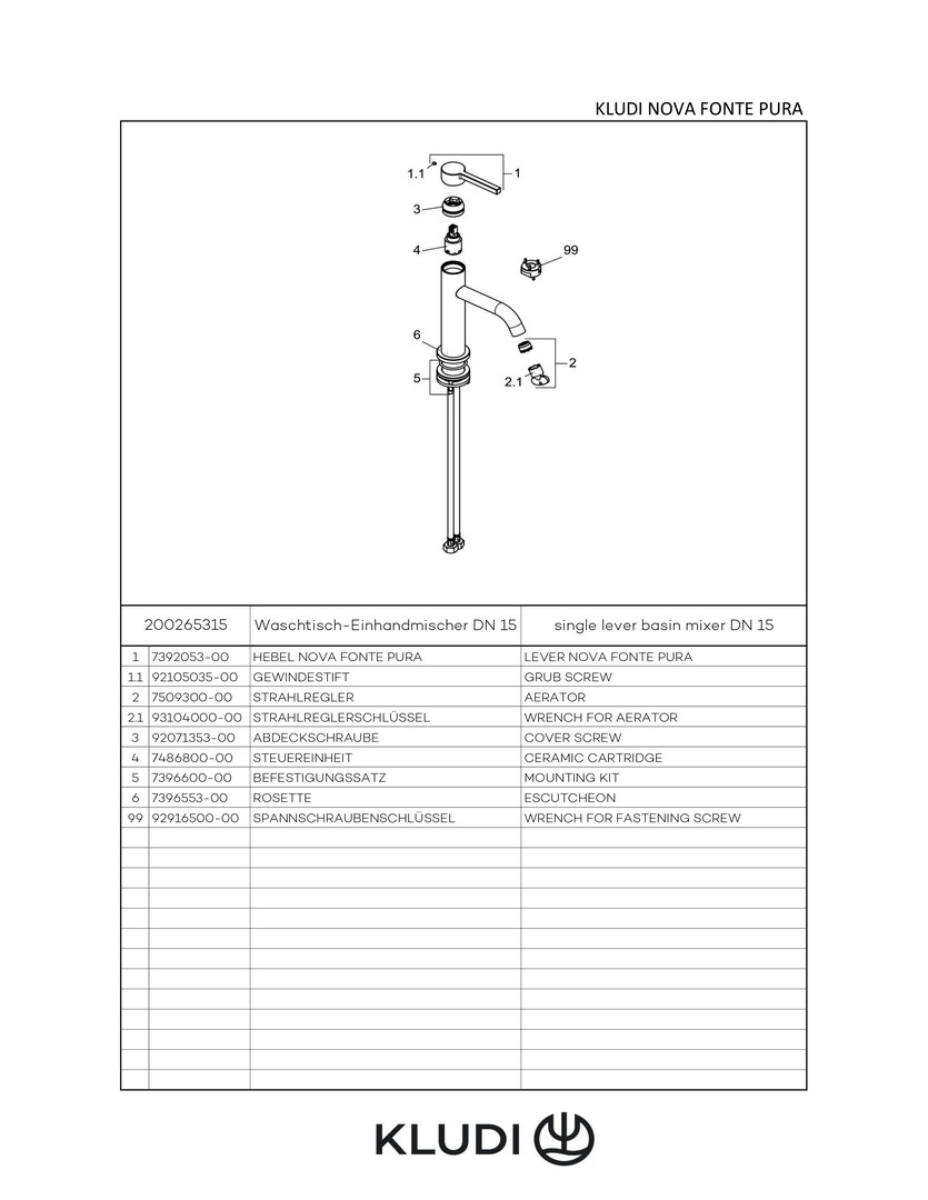 KLUDI Nova Fonte Pura Waschtisch-Einhebelmischer ohne Ablaufgarnitur, chrom W324419