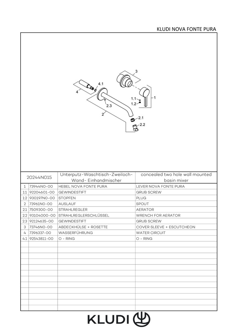KLUDI Nova Fonte Pura Fertigmontageset UP-Waschtisch-Zweiloch-Wand-Einhebelmischer, Ausladung 180mm, chrom W324497