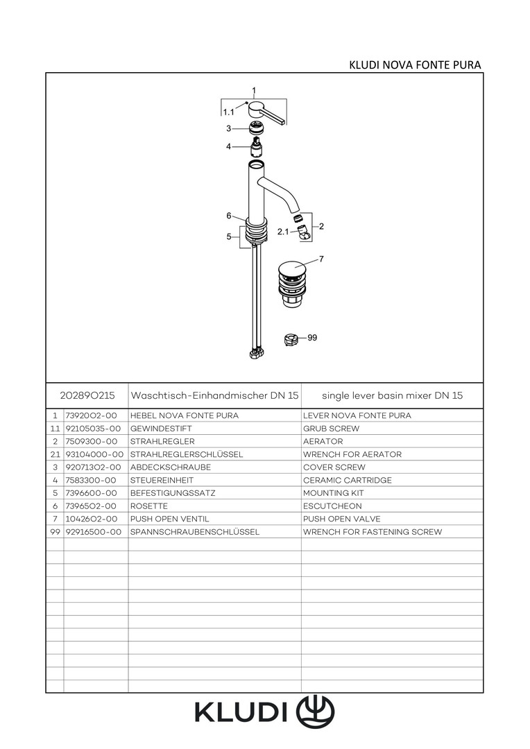 KLUDI Nova Fonte Pura Waschtisch-Einhebelmischer mit Push-Open Ablaufgarnitur, chrom W324545