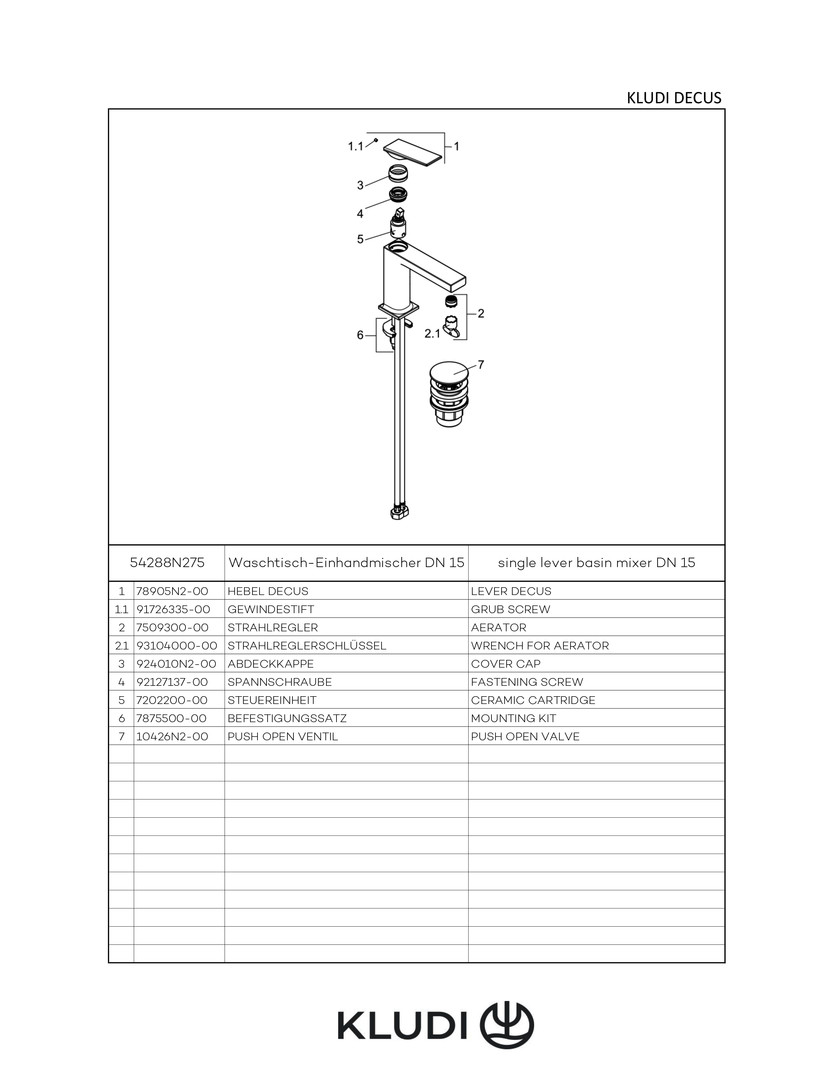 KLUDI DECUS Waschtisch-Einhebelmischer 110 mit Push-Open Ablaufgarnitur, chrom W324090
