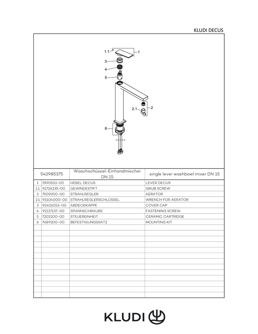 KLUDI DECUS Waschschüssel-Einhebelmischer 110 ohne Ablaufgarnitur, chrom W324111