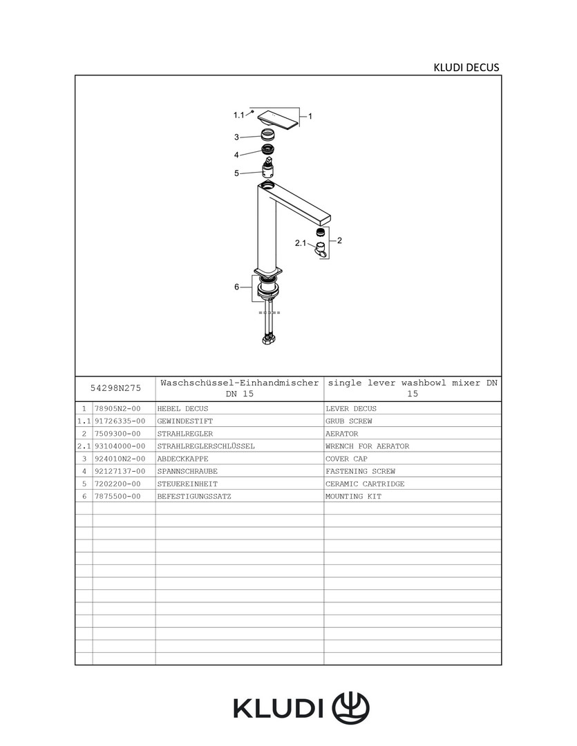 KLUDI DECUS Waschschüssel-Einhebelmischer 110 ohne Ablaufgarnitur, chrom W324111