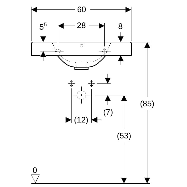 Geberit Waschtisch Preciosa II 60 x 50 cm, mit Hahnloch, mit Überlauf, mit Ablagefläche, weiß W35999