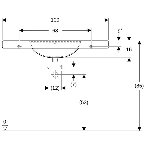 abgesenkte Hahnlochbank, aus Sanitärkeramik