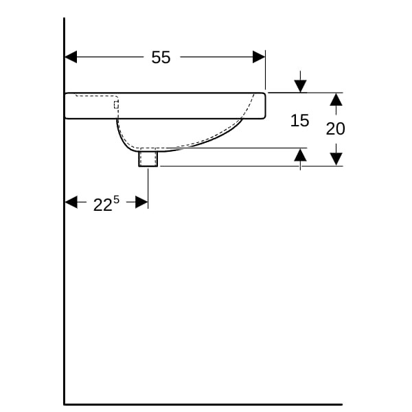 Geberit Waschtisch Preciosa 60 x 55 cm, weiß KeraTect, ohne Hahnloch, mit Überlauf, mit Ablagefläche W50550