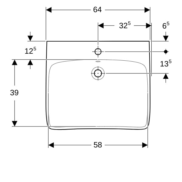 Geberit Waschtisch Renova Comfort 65x55cm, barrierefrei, mit Hahnloch, ohne Überlauf, weiß W50427
