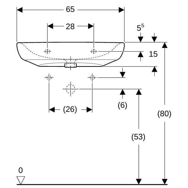Geberit Waschtisch Renova Comfort 65x55cm, barrierefrei, mit Hahnloch, ohne Überlauf, weiß