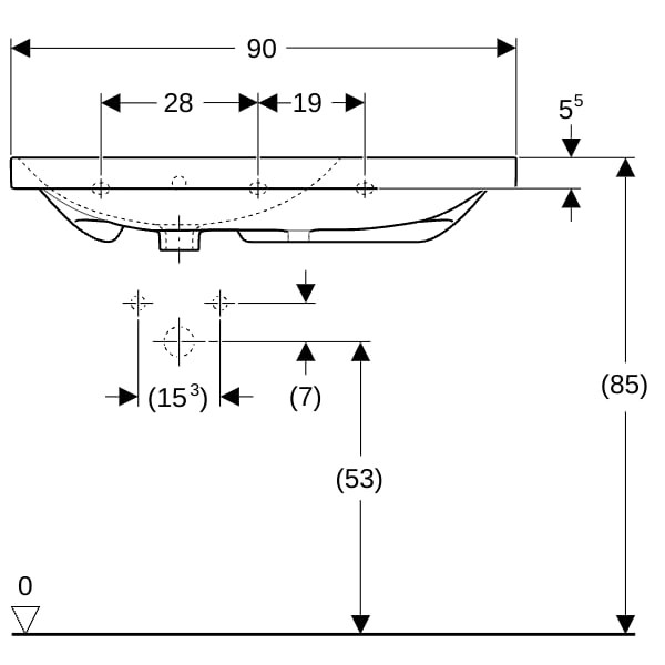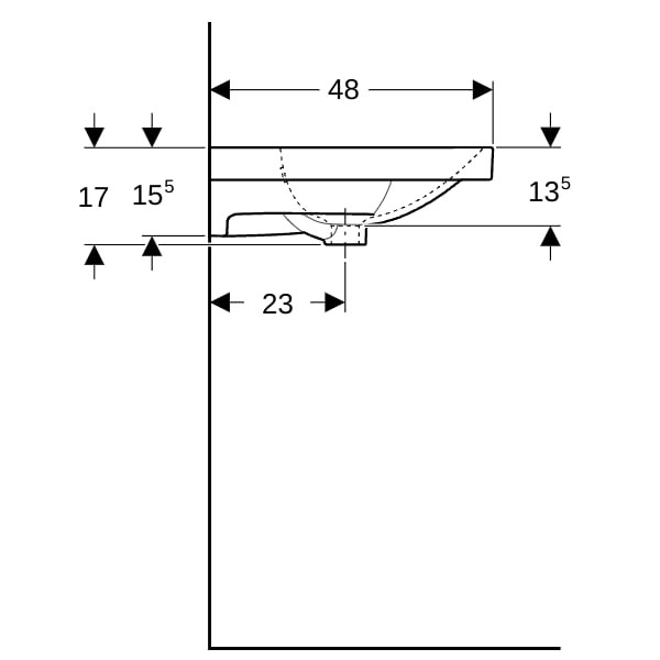 unterbaufähig, asymmetrisch, aus Sanitärkeramik, kombinierbar mit Acanto Unterschrank für Waschtisch mit Schublade und einer Innenschublade und Geruchsverschluss