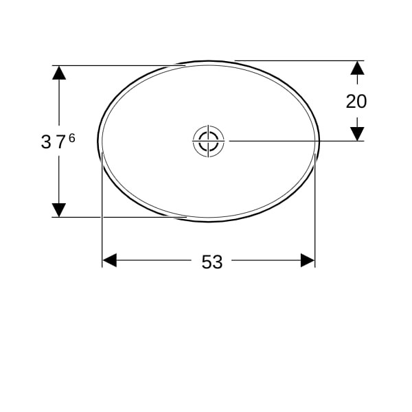 Geberit Einbau-Waschtisch VariForm 55 x 40 cm, ohne Hahnloch, ohne Überlauf, oval, Unterseite glasiert/weiß W36577