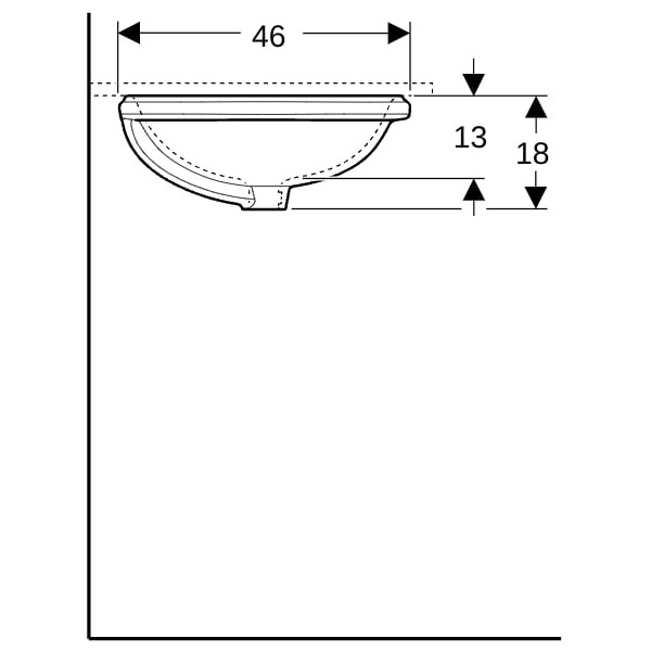 Geberit Unterbau-Waschtisch VariForm 56x46cm, ohne Hahnloch, mit Überlauf, oval, weiß W51134