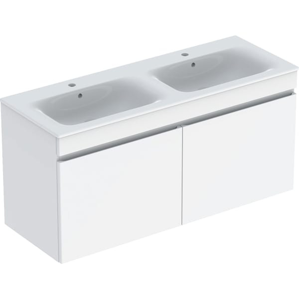 Geberit Doppelwaschtisch-Set Renova Plan 130x62,2x48cm, Korpus/Front weiß hochglänzend, Waschtisch weiß W50357