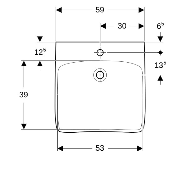 | Dimension | mit Hahnloch mittig, ohne Überlauf |