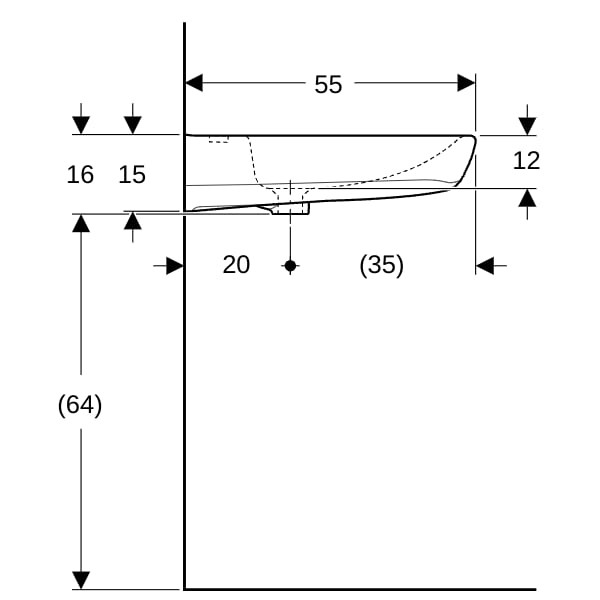 | Dimension | mit Hahnloch mittig, ohne Überlauf |