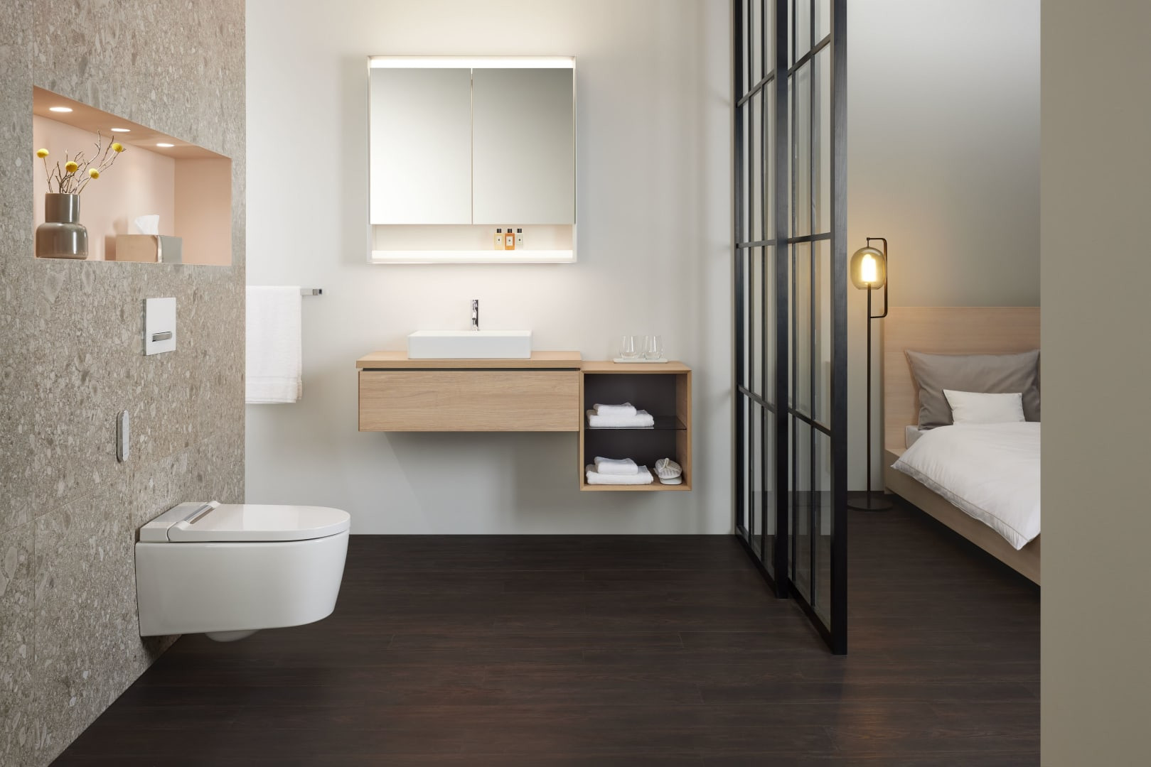 Geberit Aufsatz-Waschtisch One 50x40cm, ohne Überlauf, weiß KeraTect, Hahnloch mittig