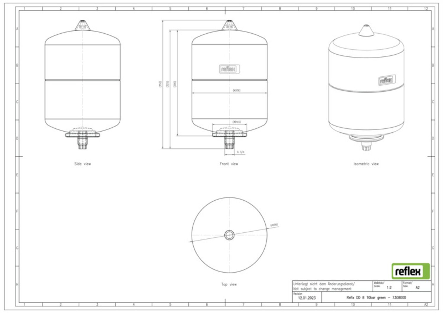 Reflex Membran-Druckausdehnungsgefäß Refix DD 12, 10 bar/70 °C, G 3/4, grün W817184