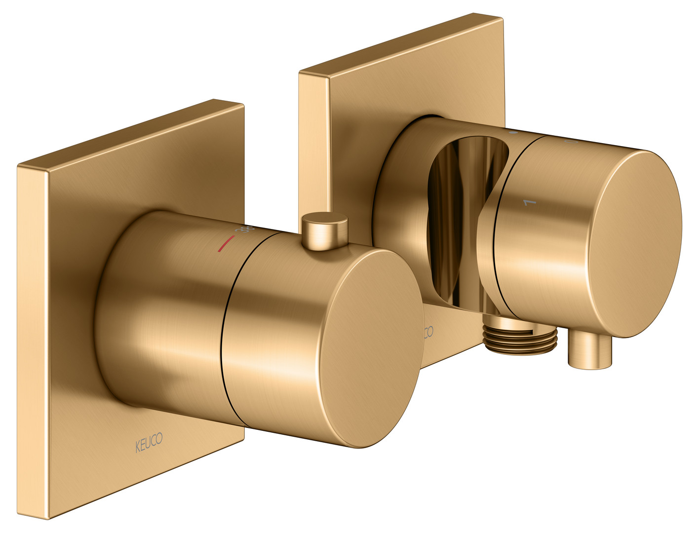 KEUCO Fertigmontageset Edition 11 Unterputz-Thermostatarmatur, Schlauchanschluss, Brausehalter, für 3 Verbraucher, messing gebürstet