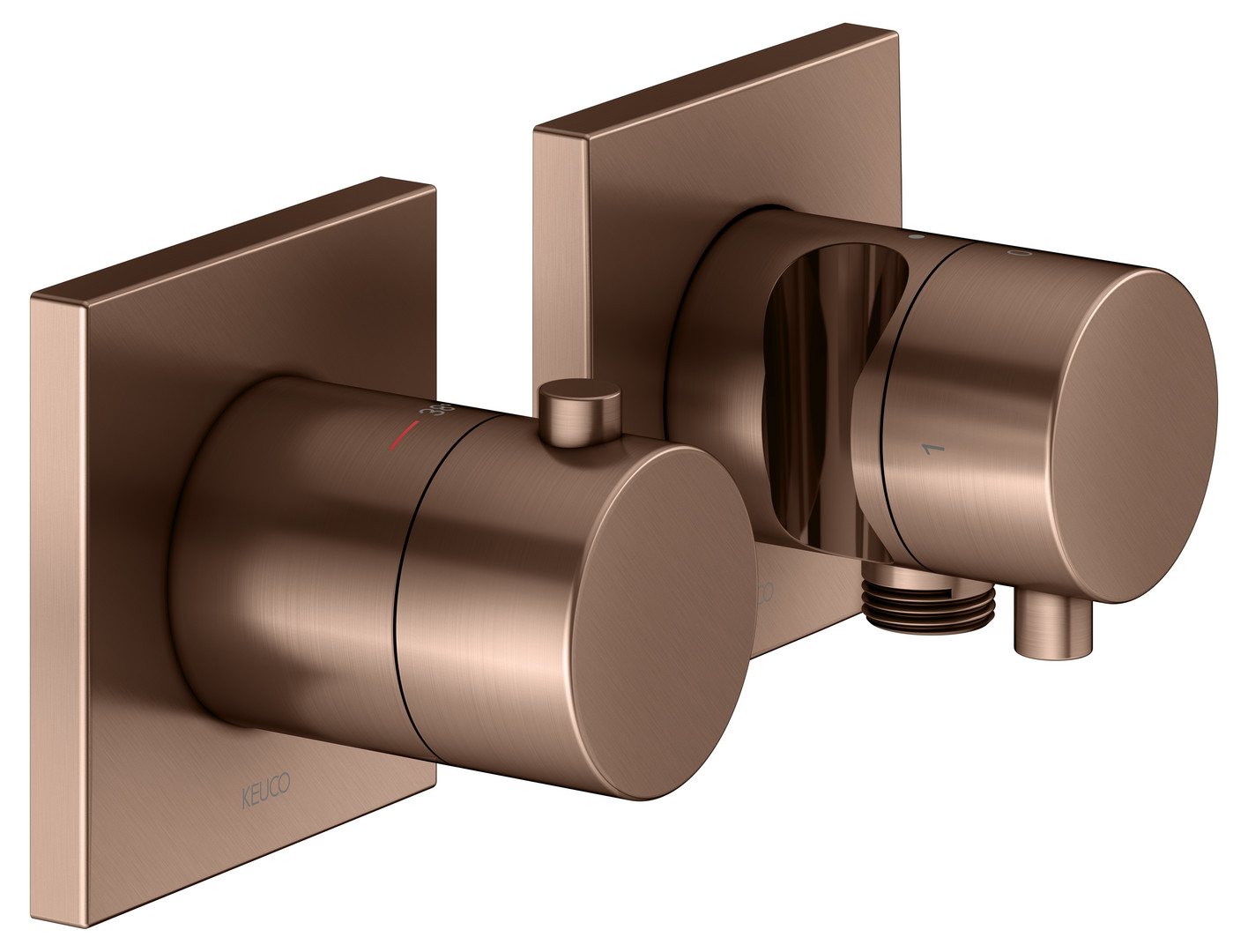 KEUCO Fertigmontageset Edition 11 UP-Thermostatarmatur, mit Schlauchanschluss, Brausehalter, für 2 Verbraucher, rotgold gebürstet